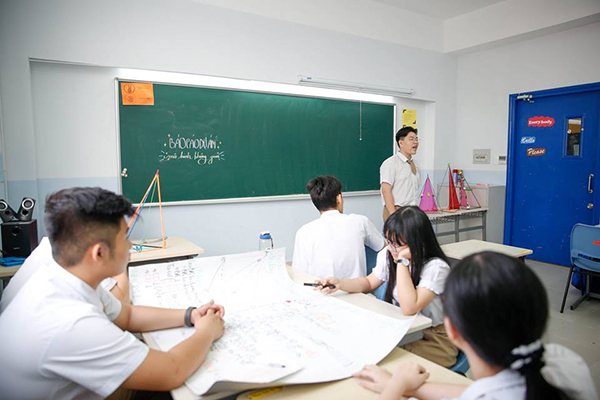Tại VSTARSCHOOL, nhằm giảm áp lực học tập cũng như giúp học sinh hiểu rõ hơn các kiến thức được dạy, nhà trường luôn cố gắng áp dụng những phương pháp dạy gắn liền với thực tế, vừa thu hút, vừa hấp dẫn lại có thể mang lại hiệu quả cao. Và dự án “Mô hình không gian” là một ví dụ cụ thể, giúp các em không còn “sợ” học Toán không gian nữa mà lại hứng thú hơn và yêu thích học tập hơn. Chỉ với những vật dụng quen thuộc như tre, giấy màu, thước kẻ…; các em tự mình làm các mô hình và thực hiện những báo cáo dựa trên các công thức Toán học một cách say mê và khá nhẹ nhàng.