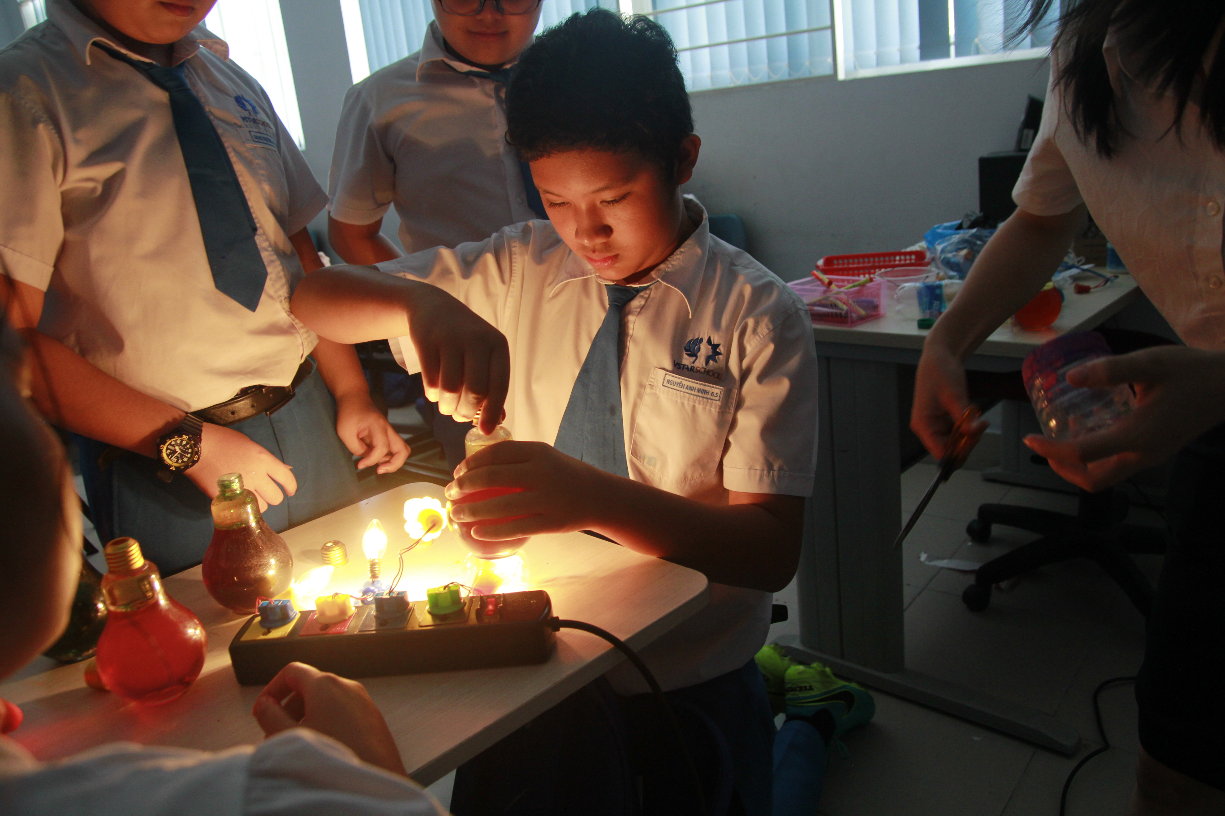 Tại VSTARSCHOOL mỗi giờ thí nghiệm là một lần các bạn nhỏ được học thêm về các quy luật của thế giới xung quanh, tập luyện khả năng suy luận logic và sáng tạo nên những “trò chơi” mới của riêng mình.